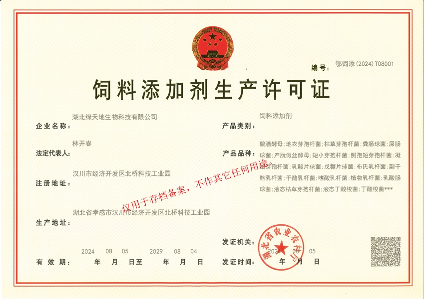 湖北綠天地生物科技有限公司 (簡稱綠天地公司)投資7000萬元,擁有25000平方米的廠房和國內(nèi)先進的設(shè)備360臺套,建有微生物發(fā)酵、發(fā)酵冷凍干燥、低溫造粒等8個車間,發(fā)酵罐總?cè)萘?50立方米,專業(yè)的飼用級益生菌發(fā)酵生產(chǎn)基地。 公司已通過IS09001:2015質(zhì)量管理體系認證。 綠天地公司得到了華中農(nóng)業(yè)大學、中國農(nóng)...